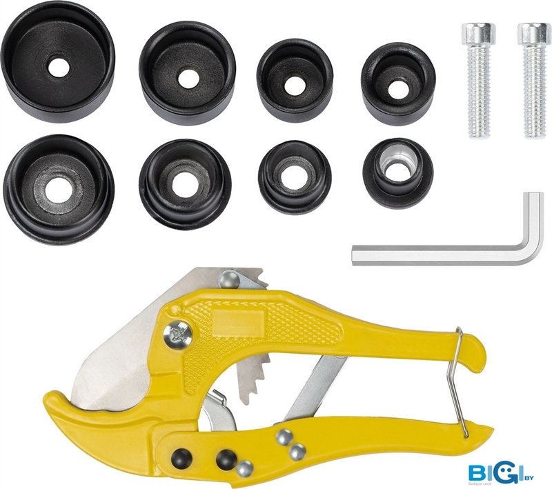 - Комплектация: - насадки 16/20/25/32 мм - 4 шт., - винт 8x30 мм 2 шт., - ключ, - кейс металлический подставка, - резак для труб ПВХ, - инструкция.