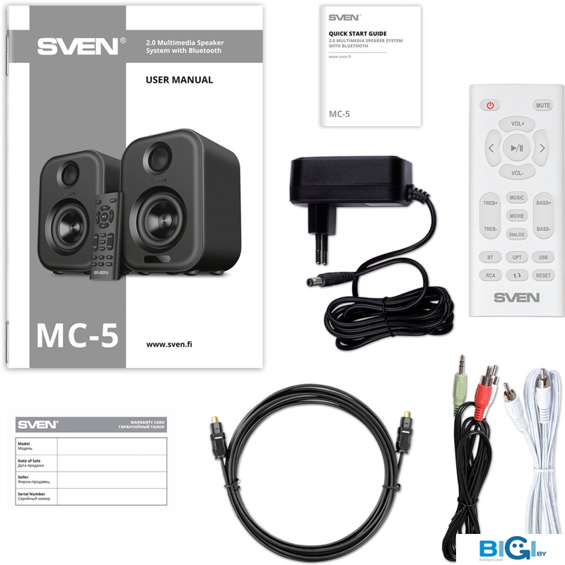 - Комплект поставки: - кабель коммутационный - аудиокабель RCA - 3.5 мм- кабель оптический - пульт д/у - кабель питания с адаптером - документация