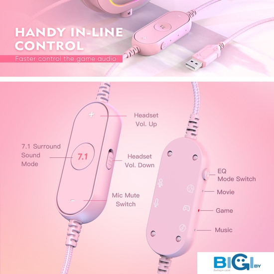 - Функции управления: активация объемного звучания, переключение пресетов эквалайзера, приглушение микрофона (mute)