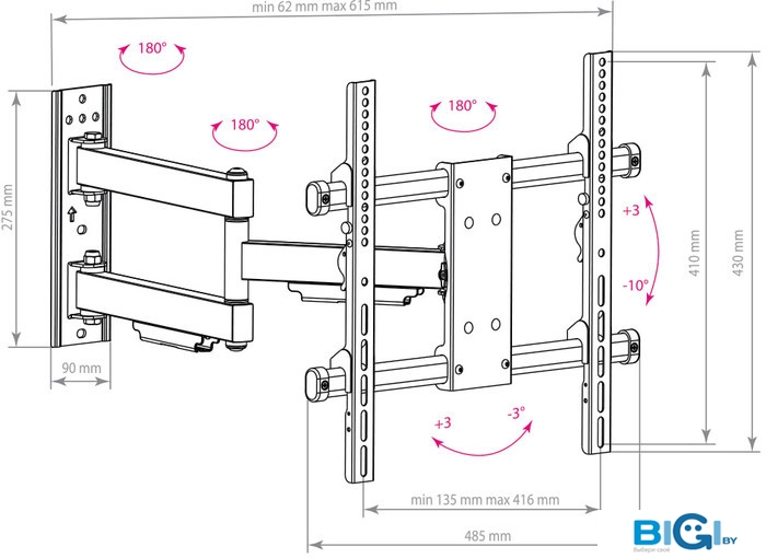 - Расстояние от стены (потолка): 62 — 615 мм