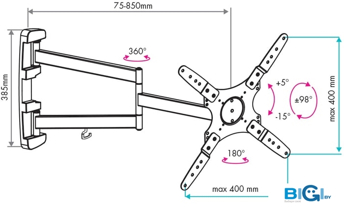- Совместимость с креплением VESA: 75x75, 100x100
