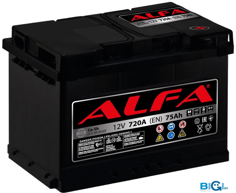 Автомобильный аккумулятор ALFA Hybrid 77 R (77 А·ч), код 1158823