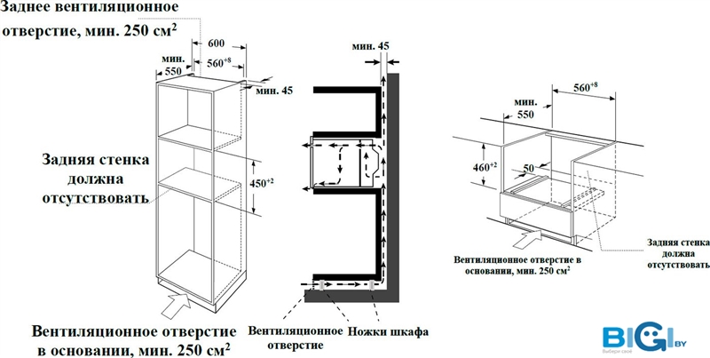 Размеры ниши для встраивания
