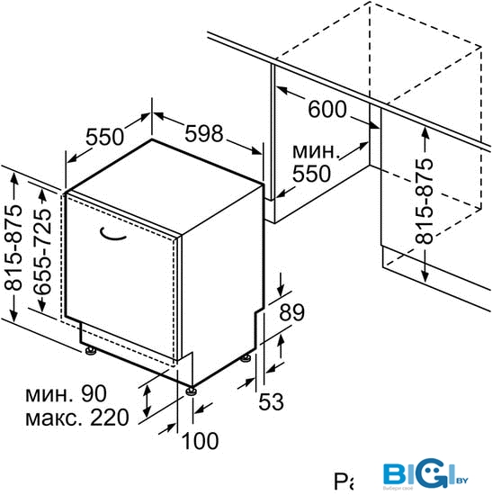 - Глубина: 55 см