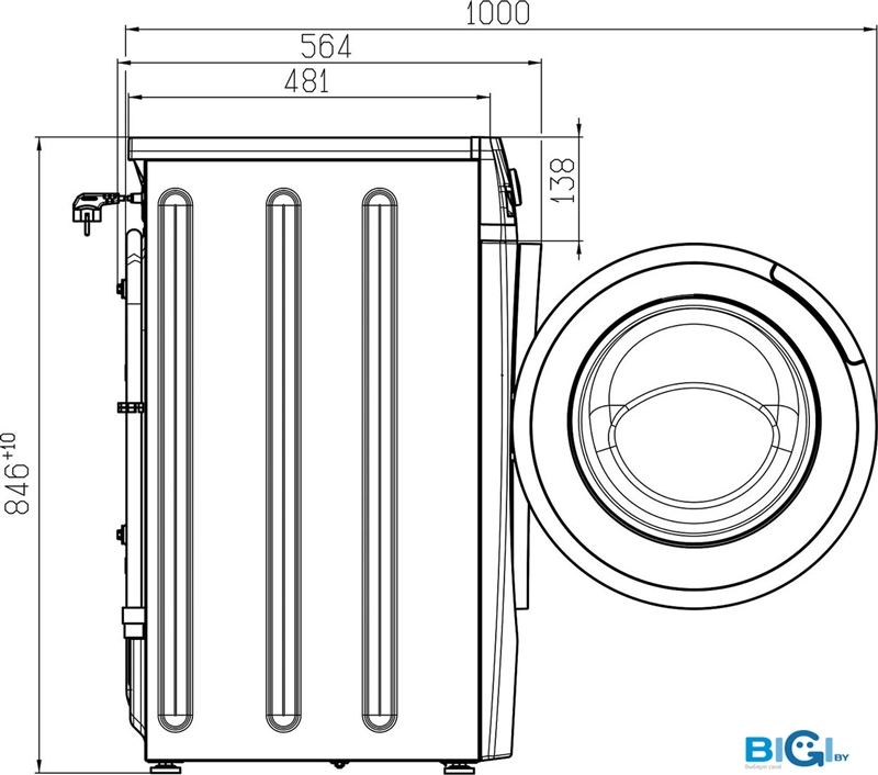 - Глубина с люком: 63.2 см