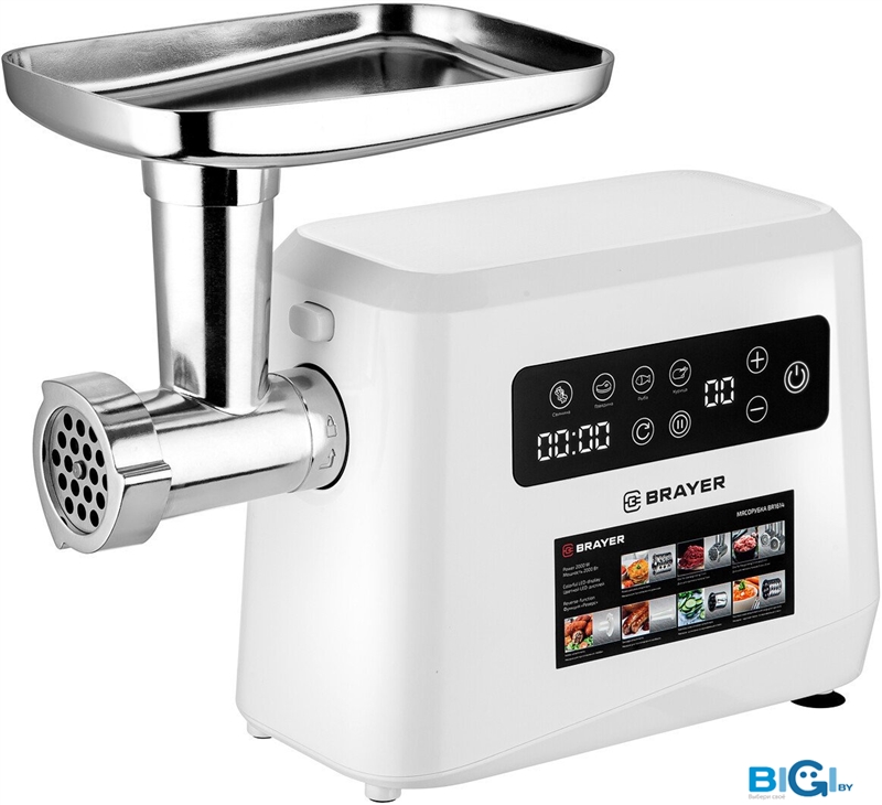 - Полная комплектация: мясорубка, 3 формовочных диска, нож из нержавеющей стали, алюминиевый поддон, толкатель, насадка для колбас, насадка для кеббе, терки для сыра и орехов, инструкция