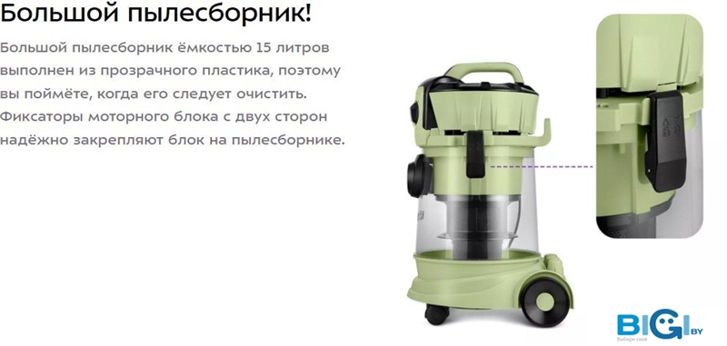 - Объём пылесборника: 15 л