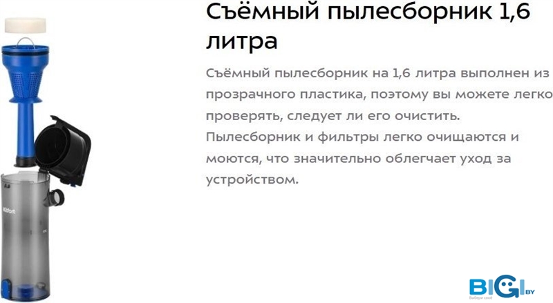 - Объём пылесборника: 1.6 л