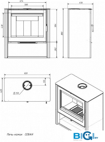 - Диаметр дымохода: 120 мм