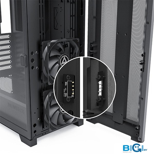 - Конфигурация вентиляторов: спереди: 3 x 120 мм или 3 x 140 ммсверху: 2 x 120 мм или 2 x 140 ммснизу: 2 x 120 мм сзади: 1 x 120 мм