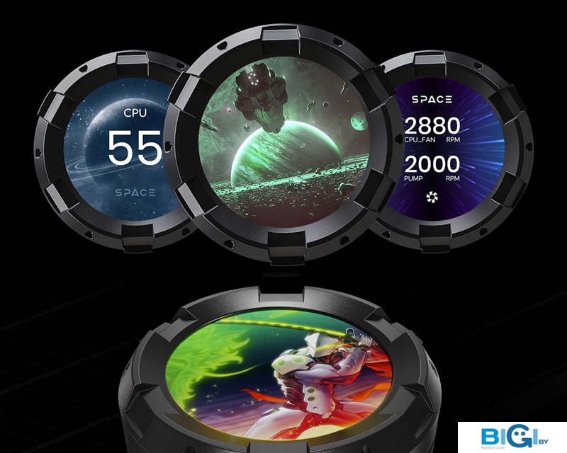 - Встроенный дисплей на водоблоке: 480x480, 24-bit, 16.7 million