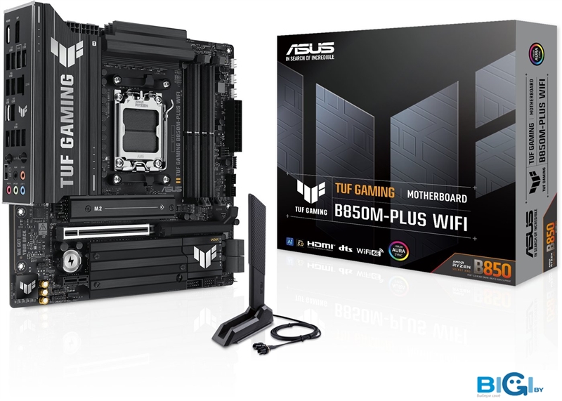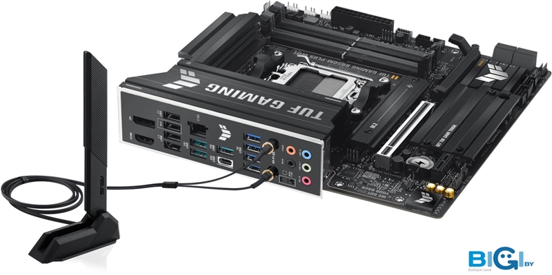 - Комплектация: 2 x кабеля SATA 6 Гбит/с, 1 x антенна ASUS WiFi Q-Antenna, 2 x резиновые пакеты для M.2, 1 x комплект винтов для M.2 SSD, 1 x наклейка TUF GAMING, документация