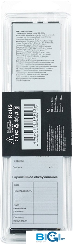 Оперативная память Lyambda 16ГБ DDR5 SODIMM 4800 МГц LRS5M48C40N1/16, код 1358446