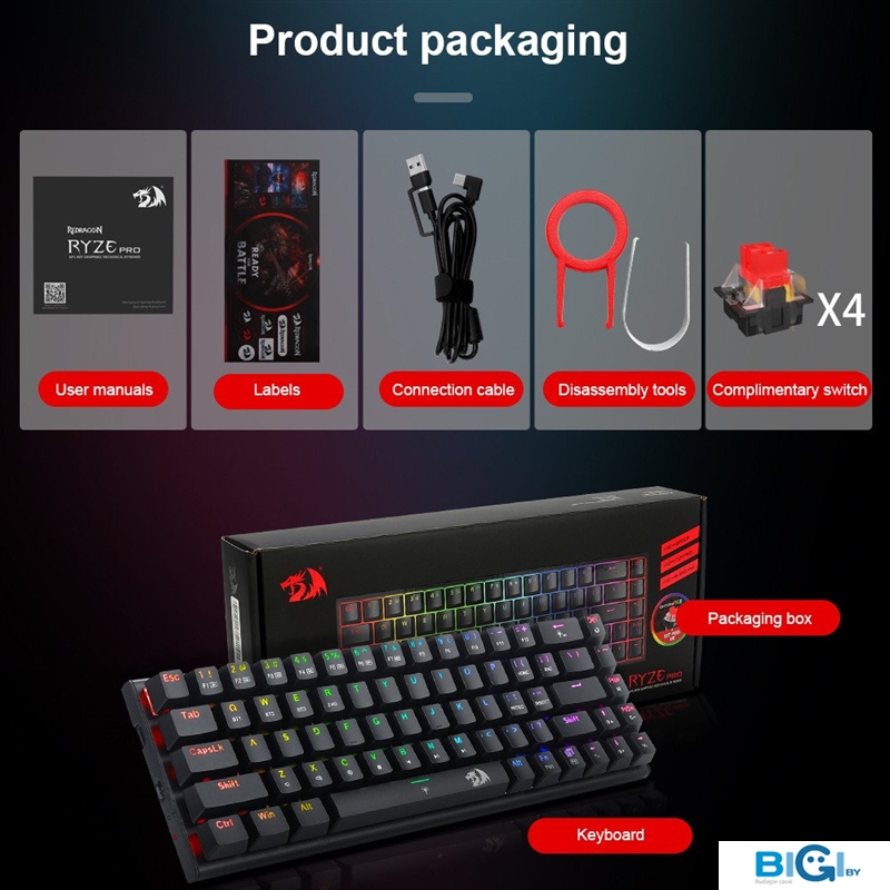 - Комплект поставки: - Кабель USB-A - USB-C- Съемник свитчей/клавиш- Запасные свитчи (2 шт)- Дополнительные клавиши (3 шт)- Инструкция на русском языке