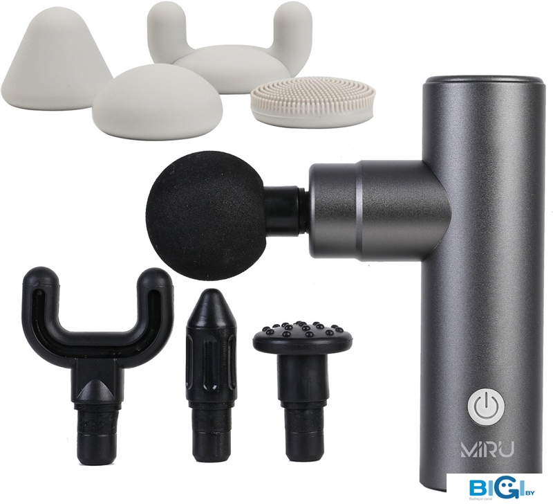 Перкуссионный массажер Miru BM-18 (8 насадок, серый)