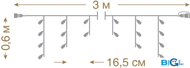 - Размер гирлянды: 3*0,6м