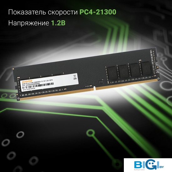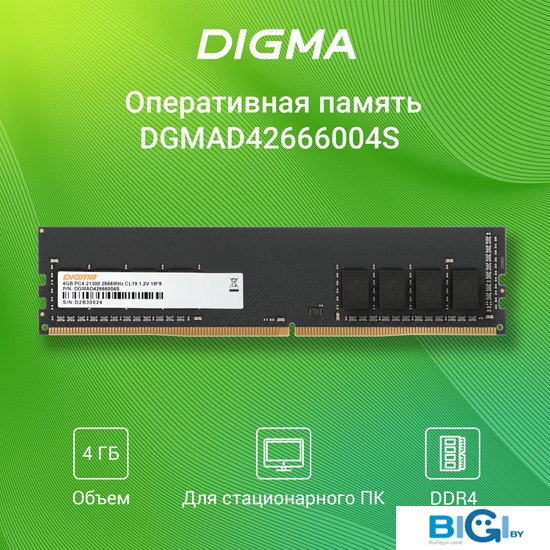 Оперативная память Digma 4ГБ DDR4 2666 МГц DGMAD42666004S, код 1315923