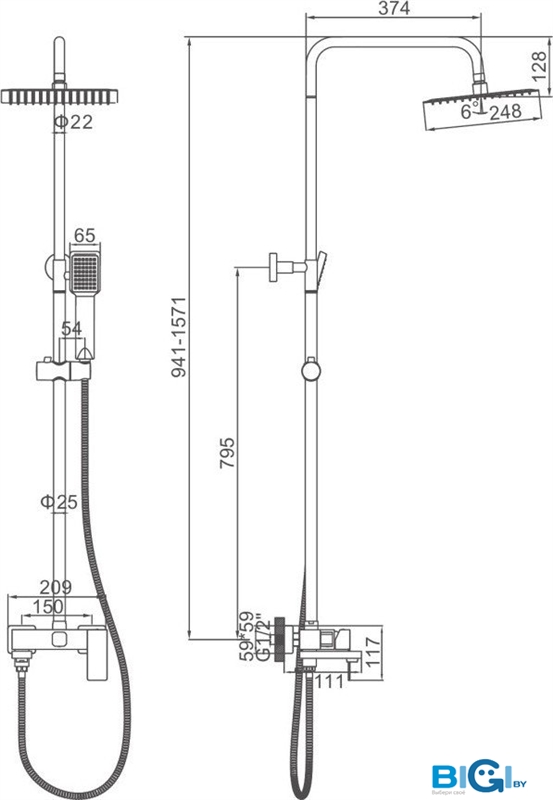 - Тип: душевая система (с верхним душем)