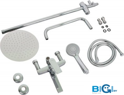 - Комплектация: верхний душ, штанга, ручной душ (лейка), держатель лейки, шланг, смеситель