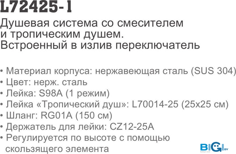 - Материал душа: пластик, сталь