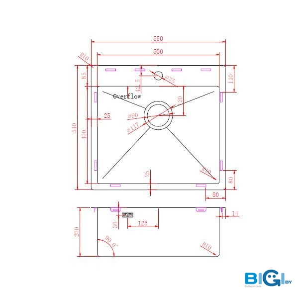 - Глубина мойки: 45 см
