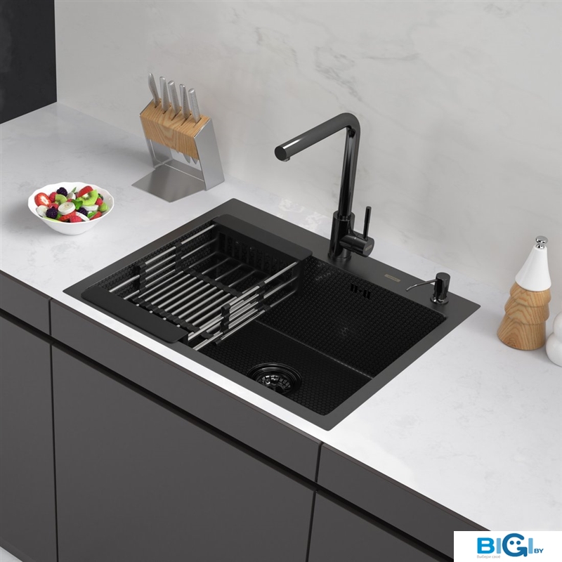 - Комплектация: мойка, роллер-мат, дозатор для жидкого мыла