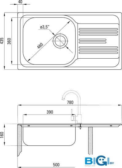 - Диаметр сливного отверстия: 3.5"