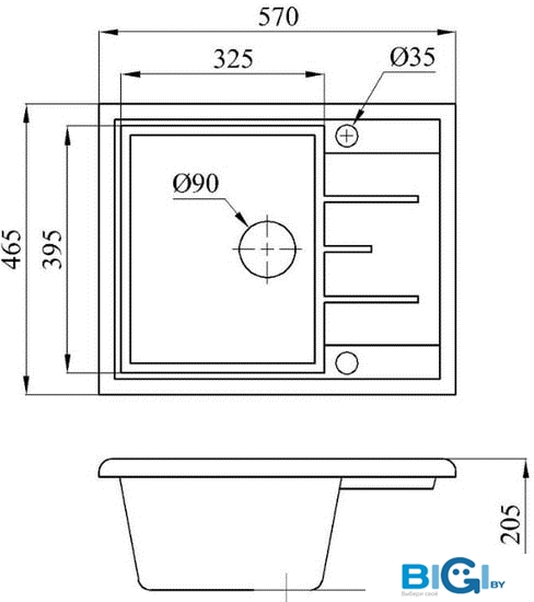 - Ширина мойки: 57 см