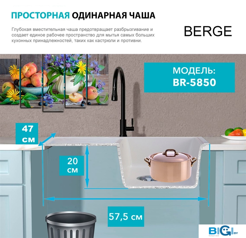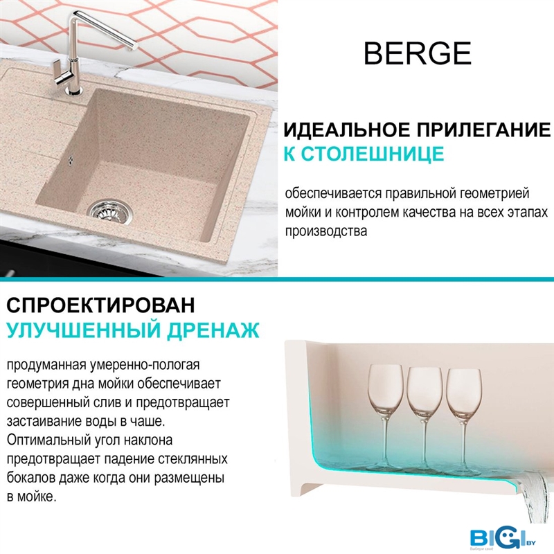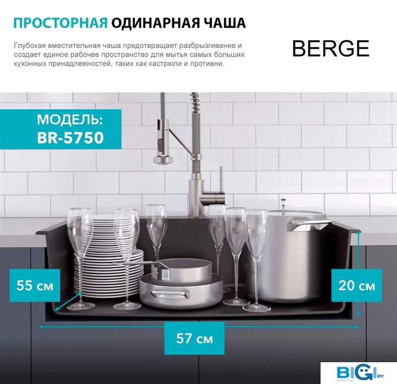 Кухонная мойка Berge BR-5850 (бежевый матовый), код 1109683
