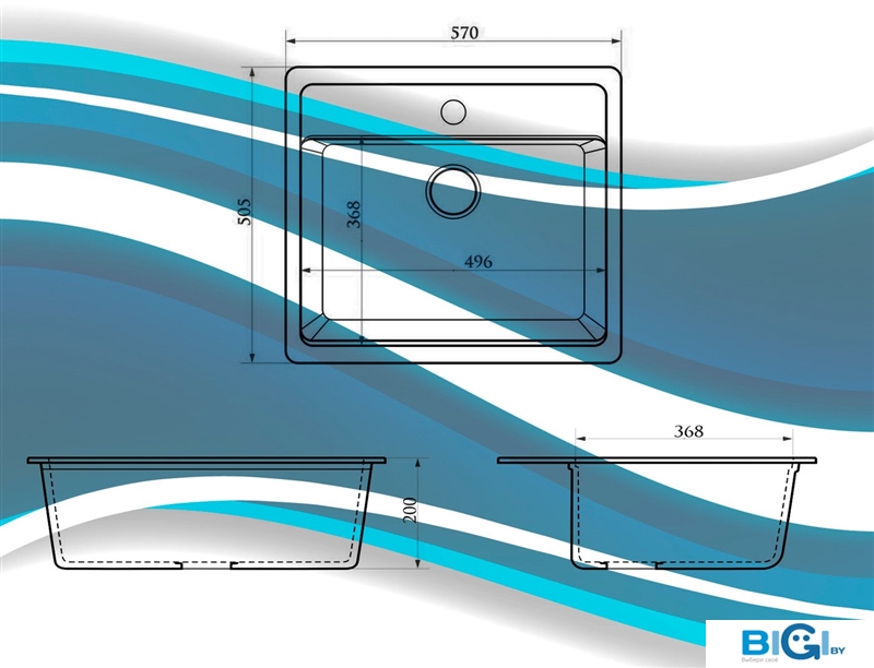 - Ширина мойки: 57.5 см