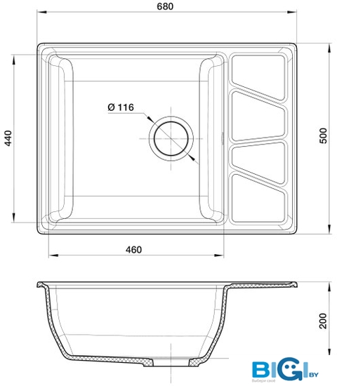 - Ширина мойки: 68 см