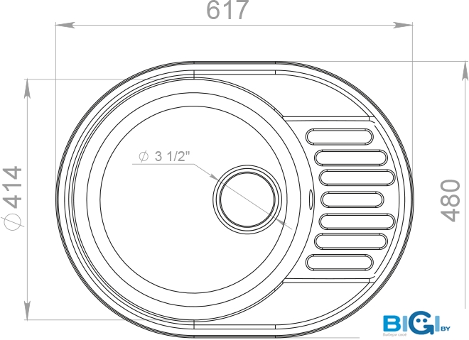 - Диаметр сливного отверстия: 3.5"