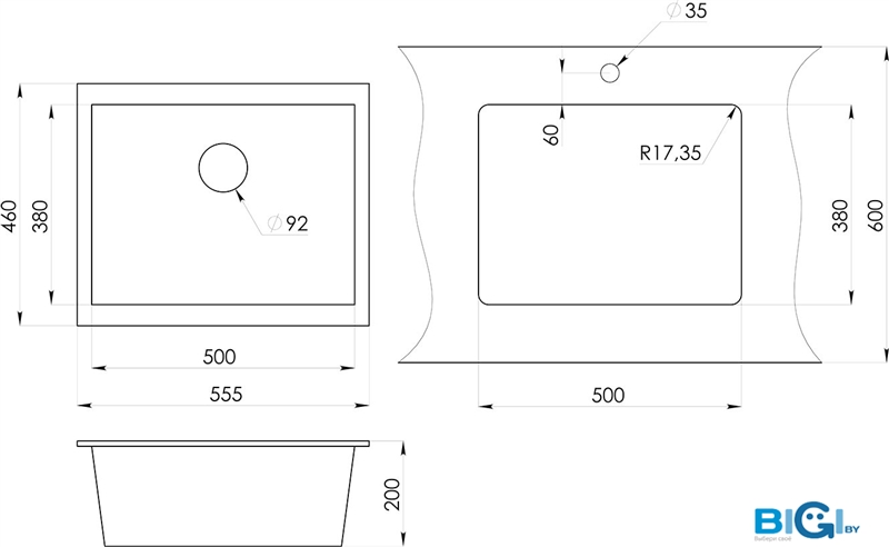 - Глубина мойки: 50 см