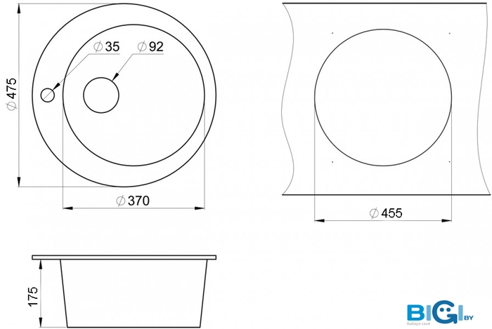 - Диаметр сливного отверстия: 3.5"