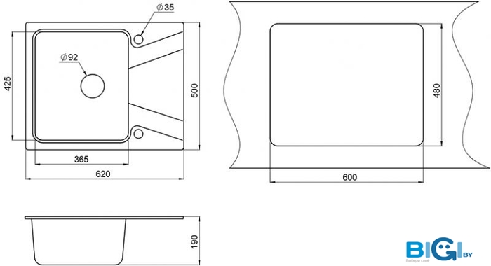 - Диаметр сливного отверстия: 3.5"