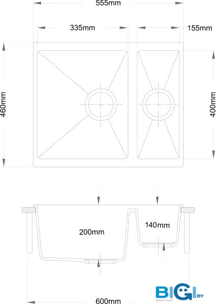 - Ширина мойки: 49 см