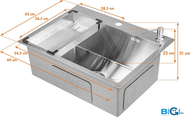- Ширина мойки: 60 см
