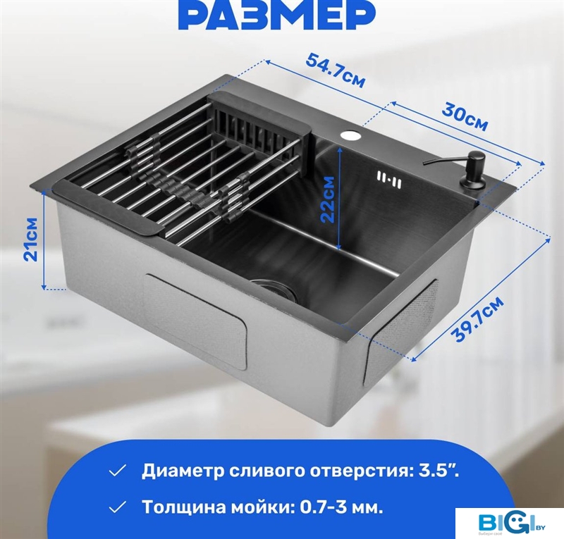 - Комплектация: сифон, дозатор, коландер