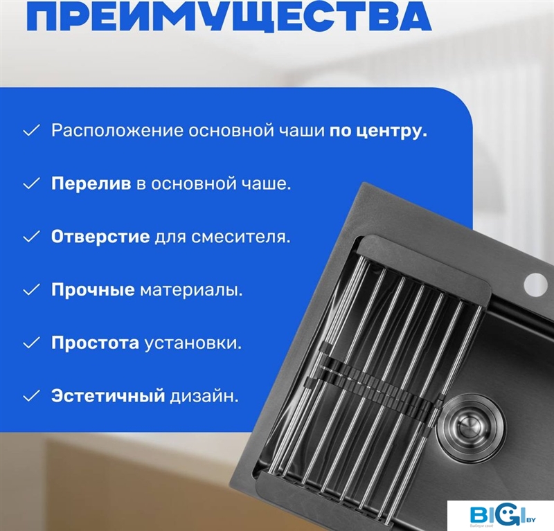 - Ширина мойки: 65 см