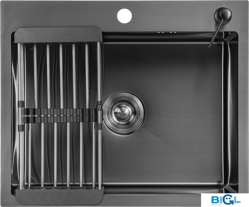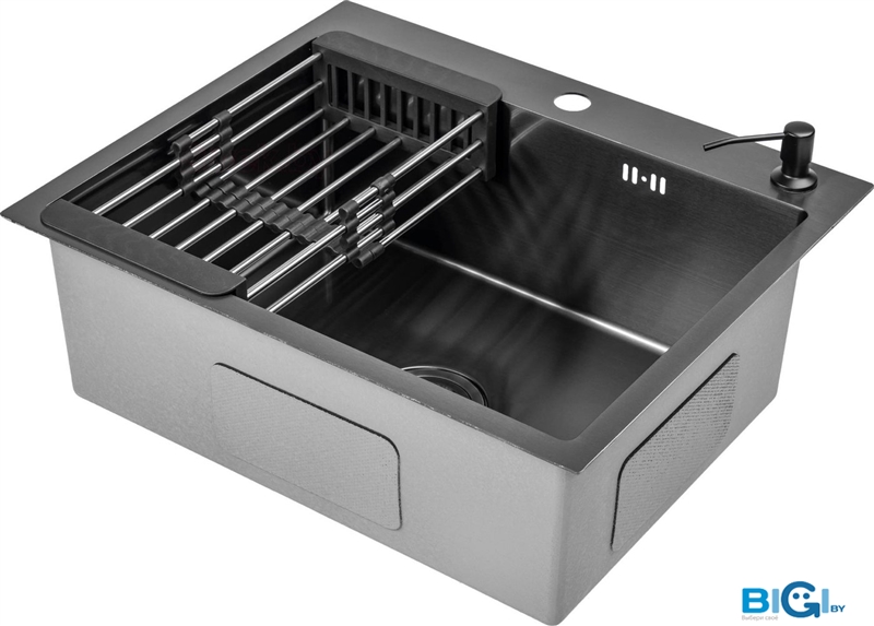 Кухонная мойка Saniteco 6550-R (с сифоном, дозатором и коландером), код 1340833