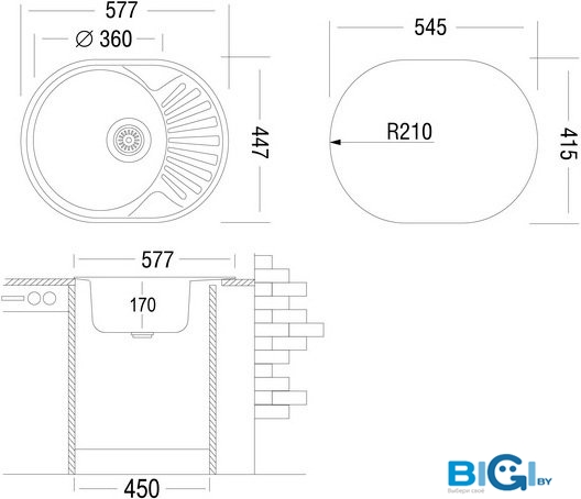- Диаметр сливного отверстия: 3.5"