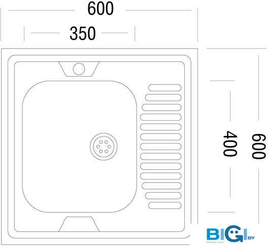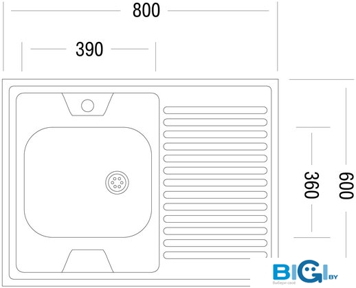 - Ширина мойки: 48 см