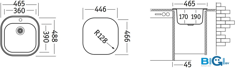 - Глубина мойки: 48 см