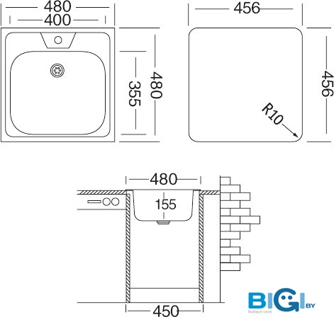 - Глубина мойки: 48 см