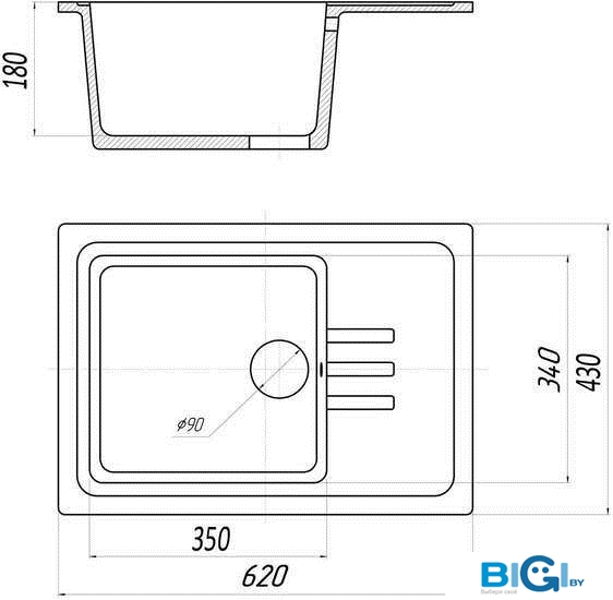 - Глубина мойки: 62 см
