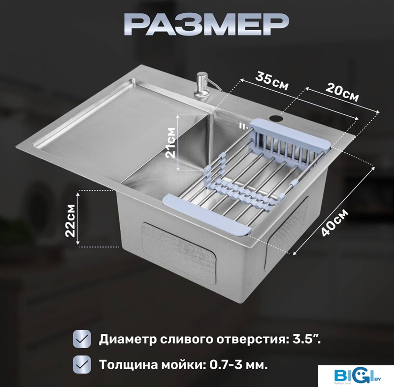 - Диаметр сливного отверстия: 3.5"