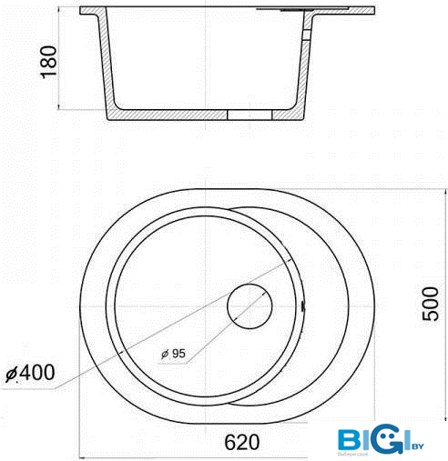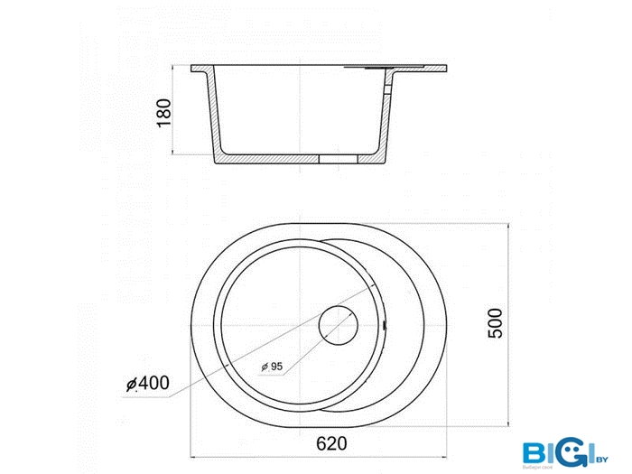 - Глубина мойки: 62 см