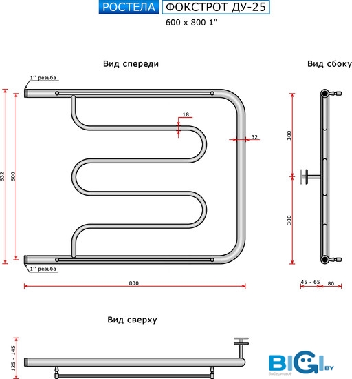 Полотенцесушитель Ростела Квадро V 50 1/2\" 50x80 см, код 565685