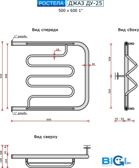 Полотенцесушитель Ростела М-образный ДУ-25 1\" 50x50 см, код 399501