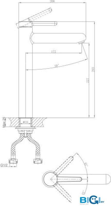 - Длина (вылет) излива: 206 мм